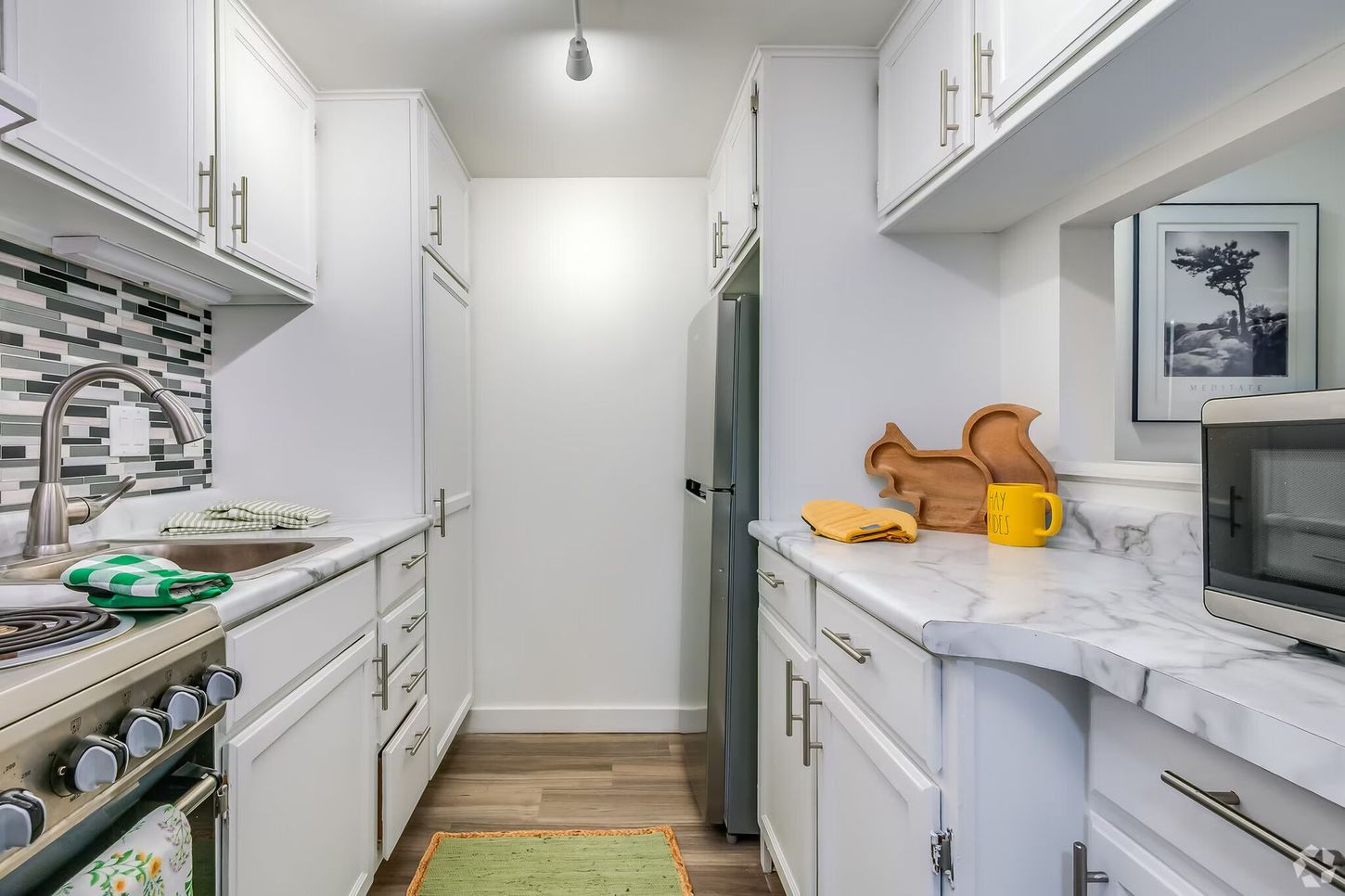 - Microwave, Range, Garbage Disposal, and Refrigerator